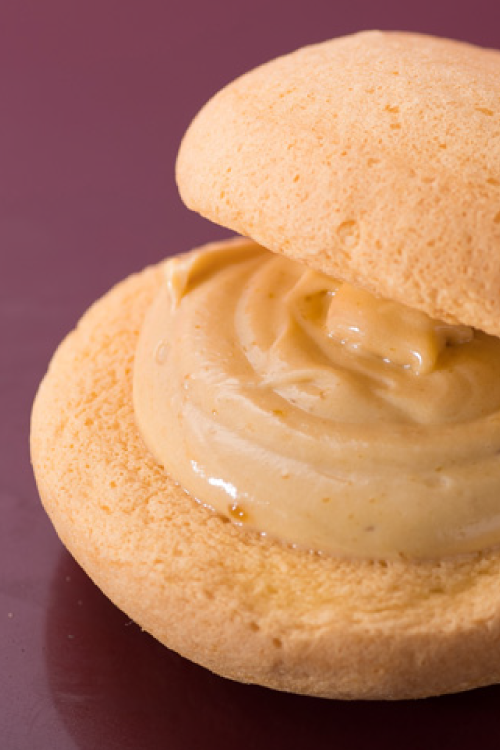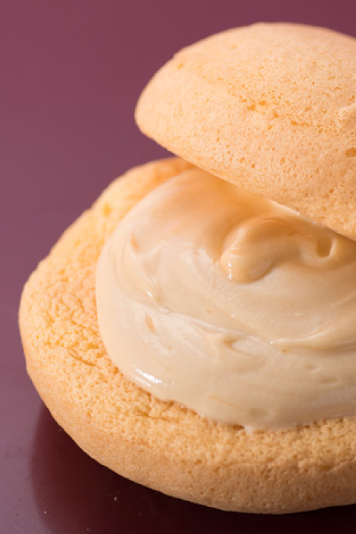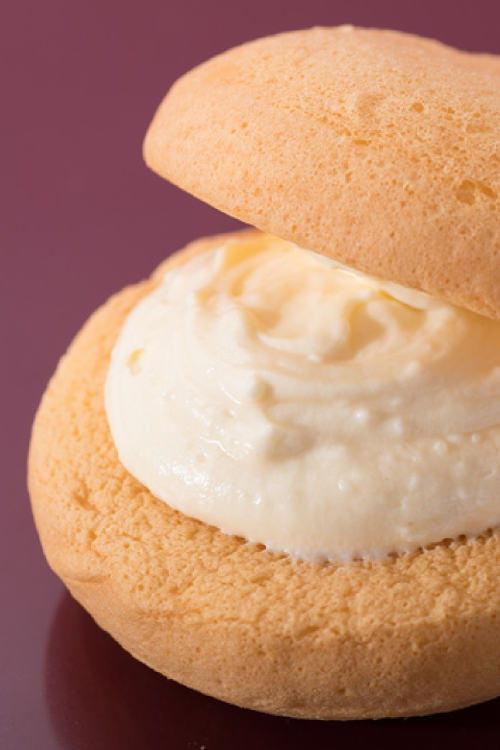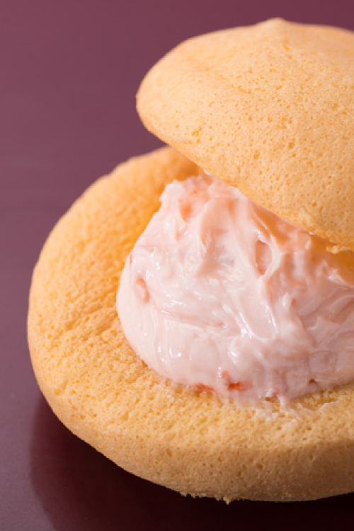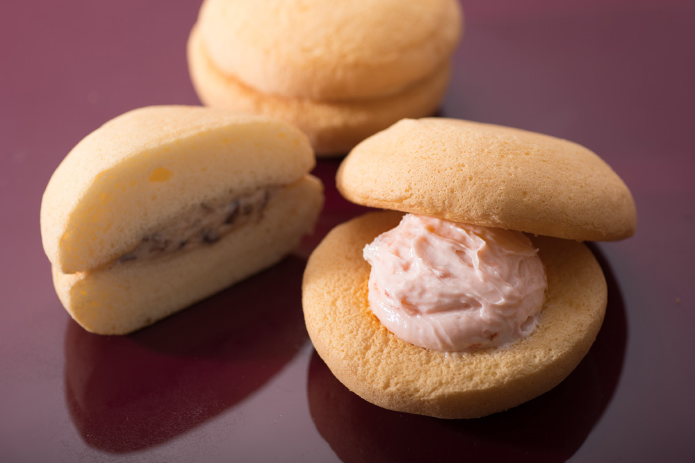 おやつの時間に食べていただきたいと考案したお菓子。そのため生地は普通のスポンジ生地よりも歯ごたえはありますが、口どけが良いため重く感じないのが特徴です。サンドのクリームはその生地の特徴をいかしつつ、味の方向性をかえてあげる絶妙のバランスで仕上げています。味・ボリューム・リーズナブル、三拍子そろったルミラン人気お菓子です。 フルムーンの名前の通りカワイイまん丸形、厳選たまごをたっぷり使ったふっわふっわの生地に丁寧に練り込んだなめらかクリームをたっぷりサンド!